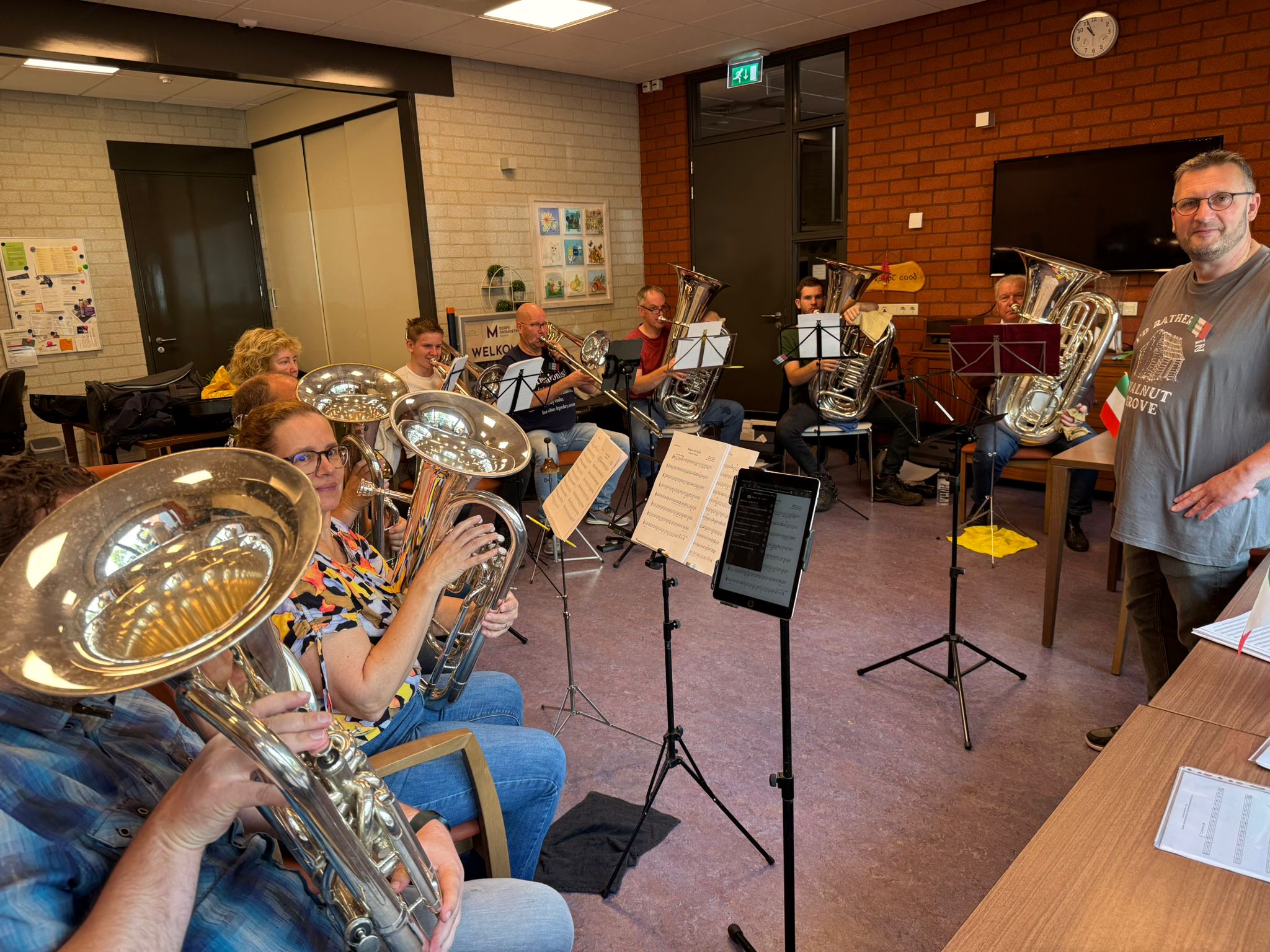Naast de muzikanten waren er ook tal van vrijwilligers actief die zorgden dat alles op rolletjes liep van logistiek en catering tot begeleiding tijdens de repetities. Hun inzet droeg in grote mate bij aan de ontspannen en inspirerende sfeer van de dag.